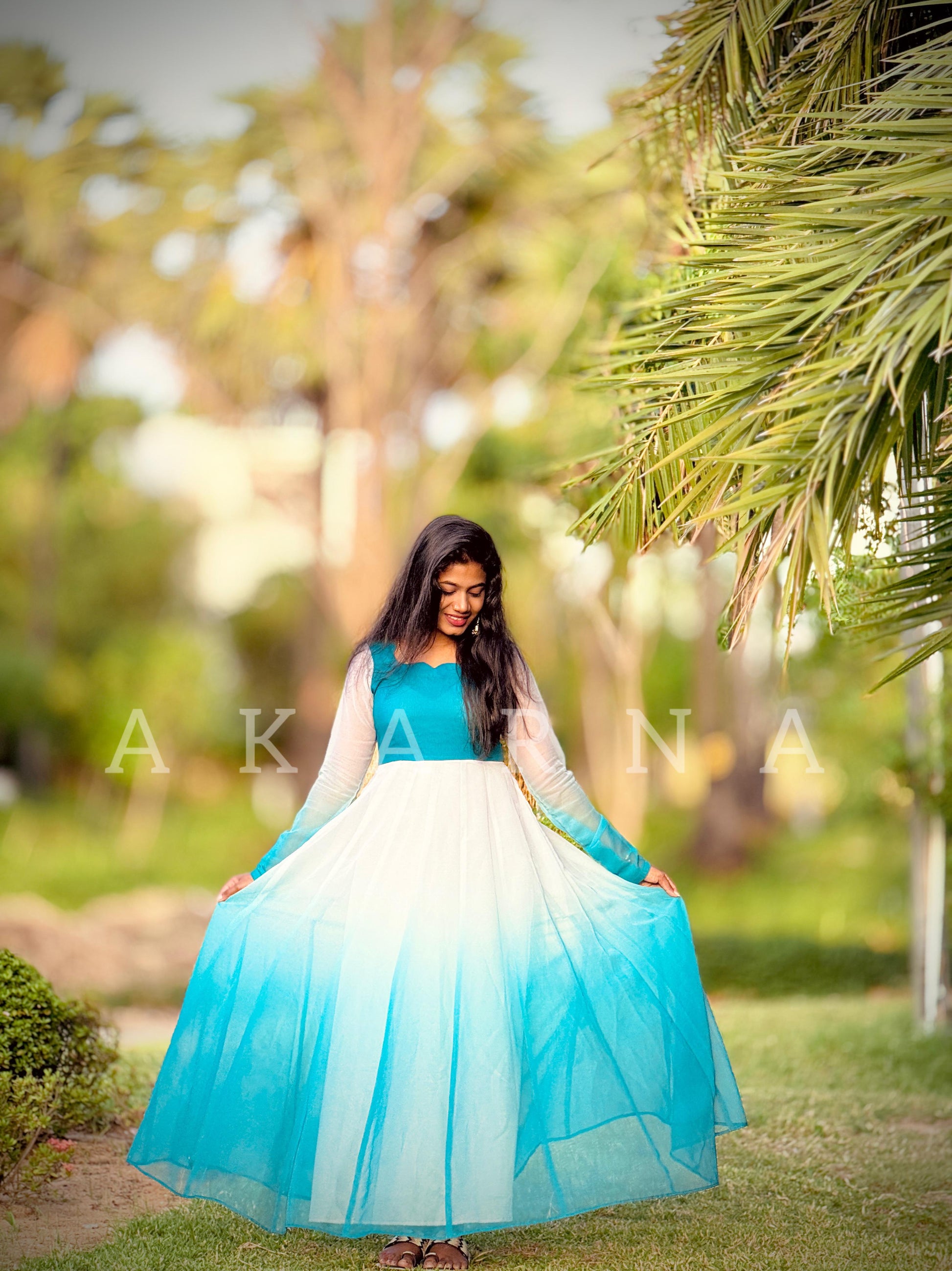 Unveiling our bestselling dual-shade gown — a graceful blend of sky blue and pearl white, designed to flow like a breeze and glow in every frame. 🌿 Crafted with: