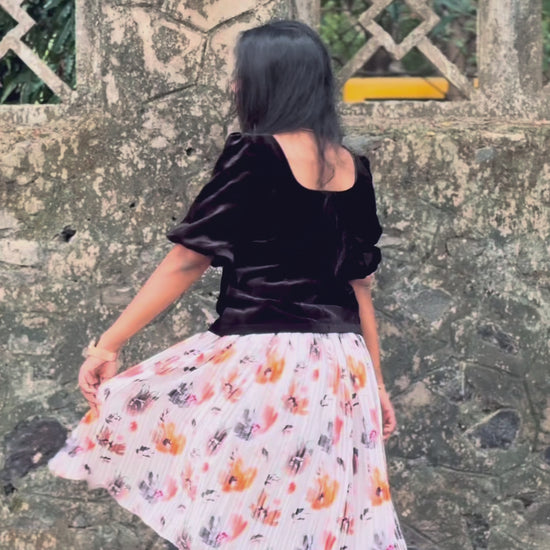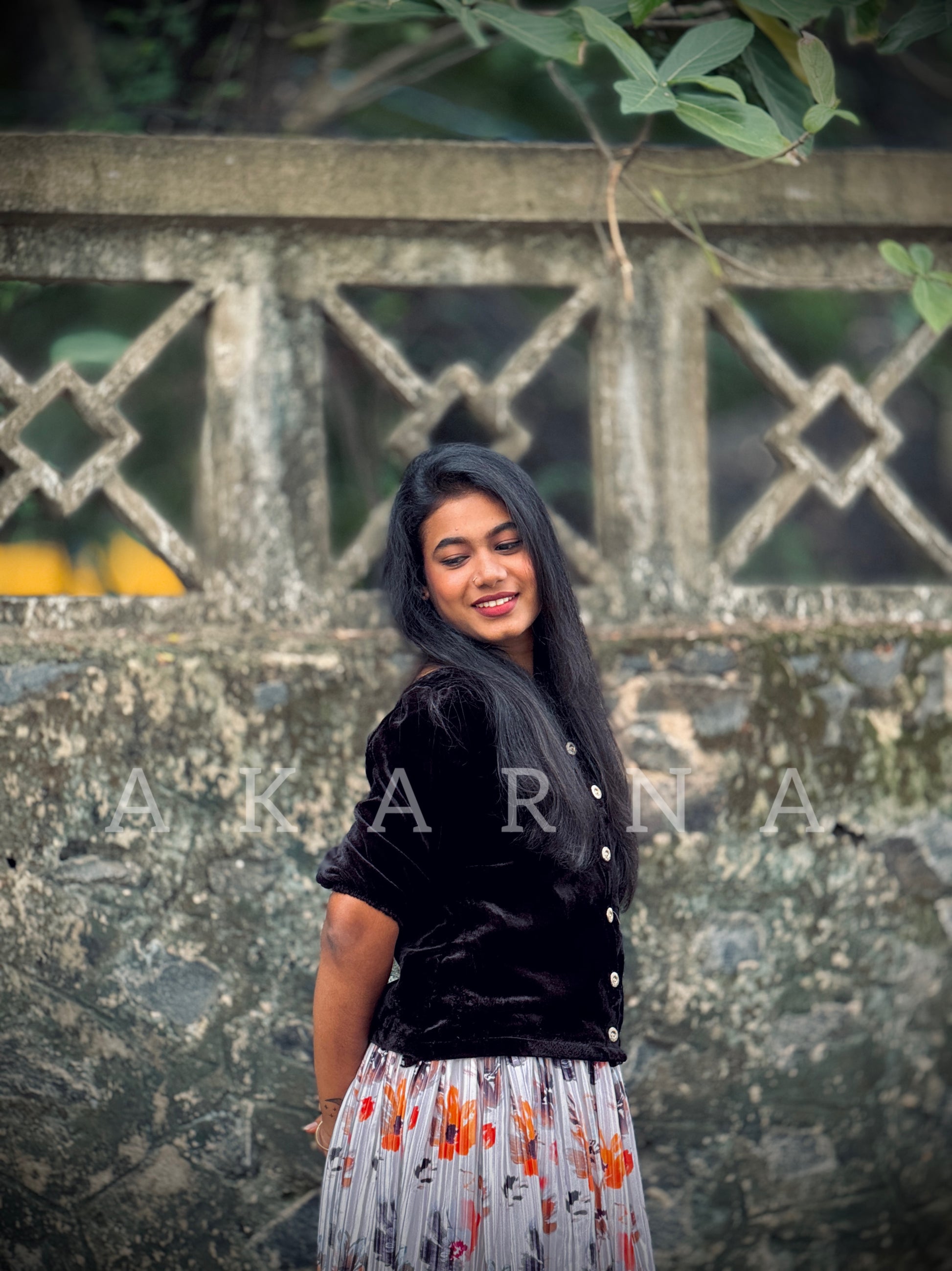 🖤Black Velvet Top with Floral Skirt Set – premium velvet, vibrant floral print, perfect for parties, weddings, and festive events. Stylish, comfortable, and designed to make you stand out.😍
