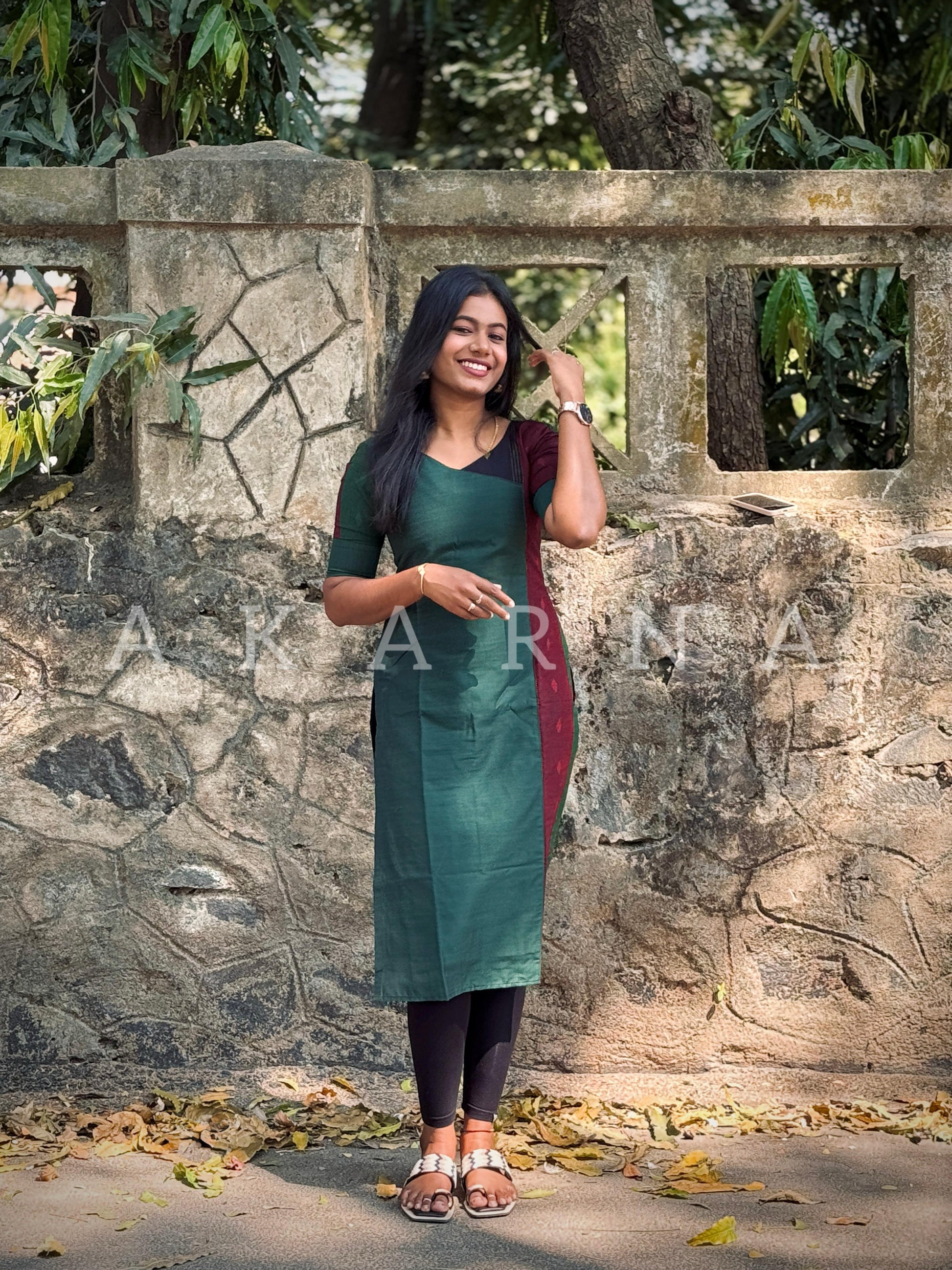 Exude freshness and tranquility with our Cotton Green Kurti, crafted from soft, breathable cotton for all-day comfort. The serene green hue adds a natural elegance, making it the perfect choice for casual outings or laid-back gatherings